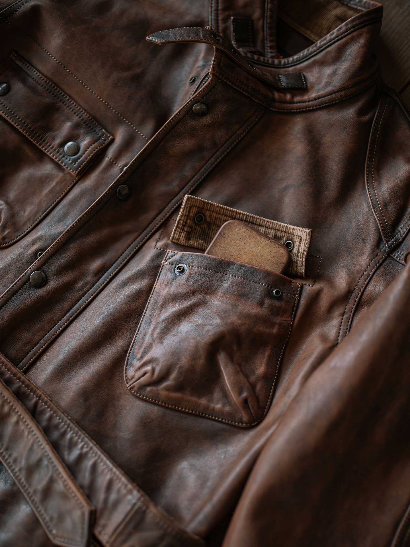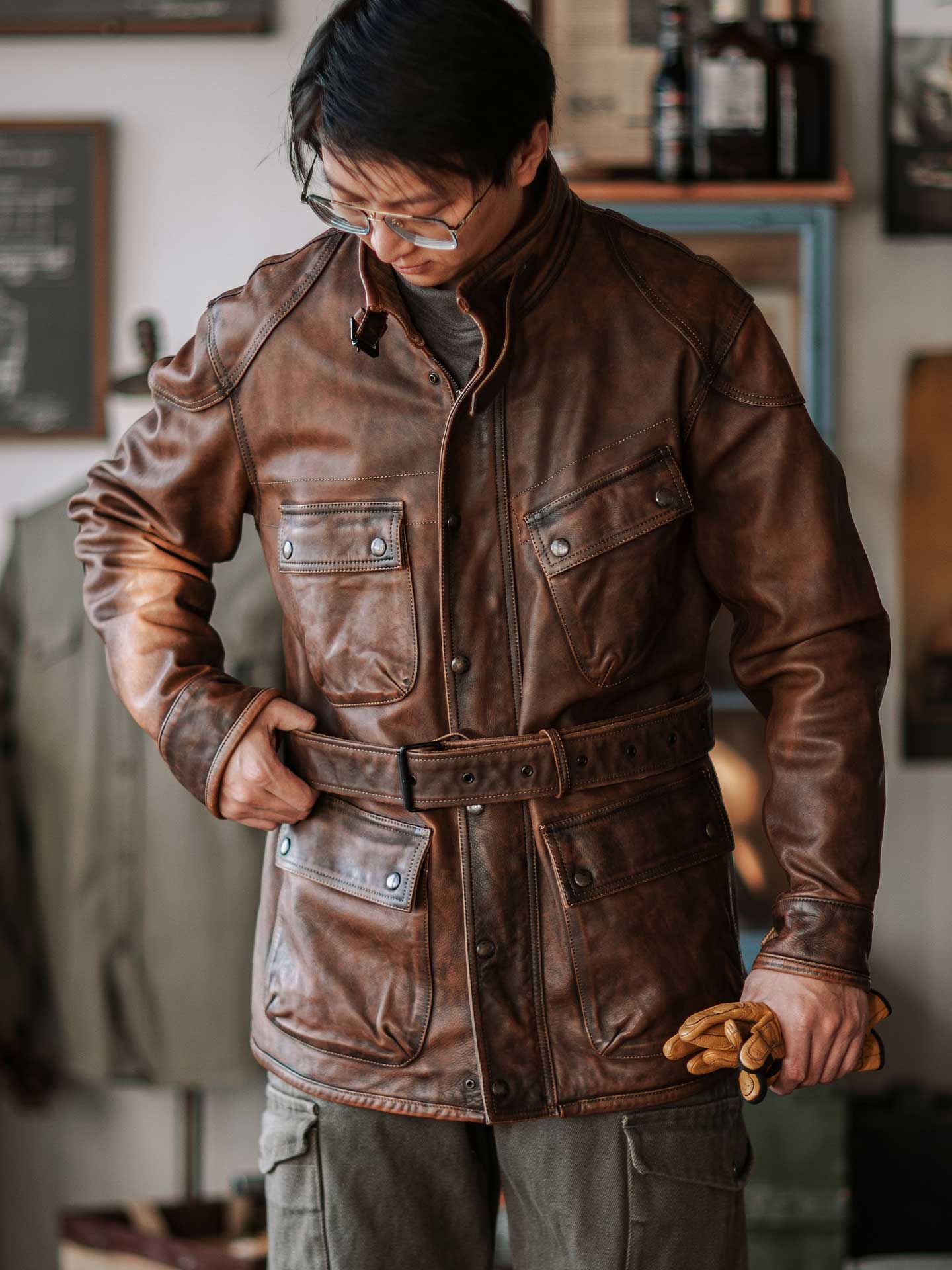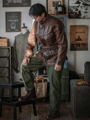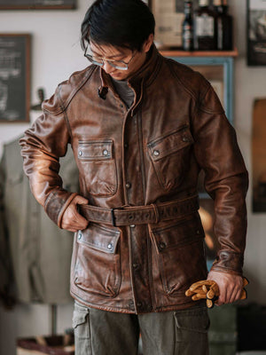 Classic Military Roots. Premium Leather Craftsmanship. Honor the legacy of the International. This jacket takes the timeless field design and elevates it in durable, high-quality brown leather.