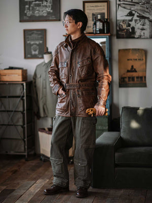 International Multi-Pocket Leather Jacket